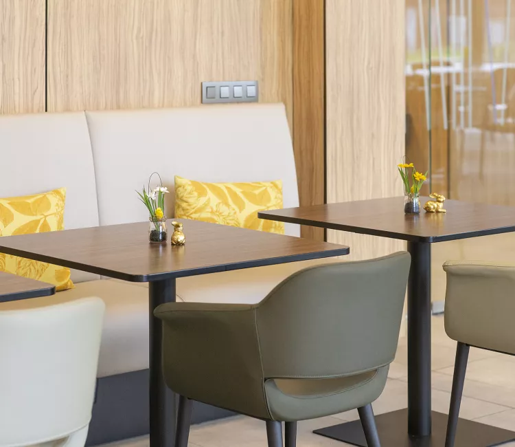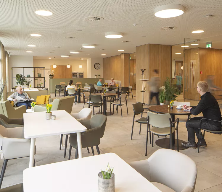 Dhr Gunther Huygens – Algemeen Directeur WZC Sint-Jozef: De cafetaria, het kloppende hart, is de ontmoetingsruimte waar jong en oud zich thuis voelen dankzij de mooie en smaakvolle inrichting. Het resultaat van een jarenlange constructieve samenwerking met Moments. Hierbij werd heel goed geluisterd wat onze bewoners het meest verlangen: “Een warme, huiselijke plek om in te wonen en leven.” De kleine accenten, ons aangereikt door de interieurstylisten van Studio M, zijn figuurlijk helemaal niet zo klein! Niet onbelangrijk, ook onze medewerkers van het onderhoud- en woonleefteam werden volop gehoord.